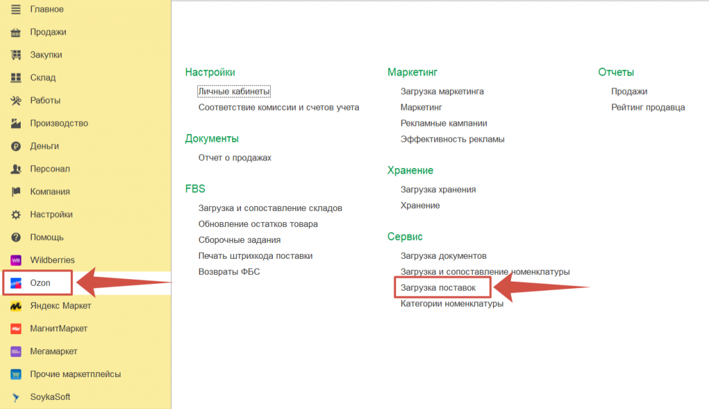 - Обработка “Загрузка поставок”.Позволяет загрузить поставки как по АПИ, так и через файл Excel (с номерами поставок).