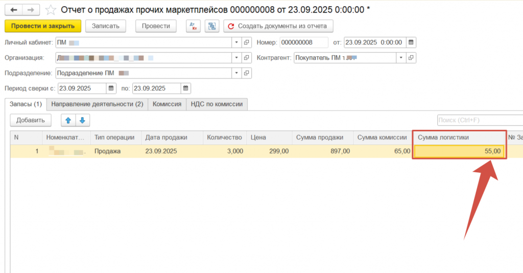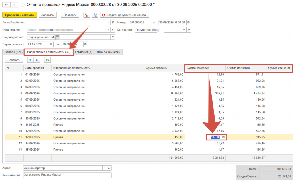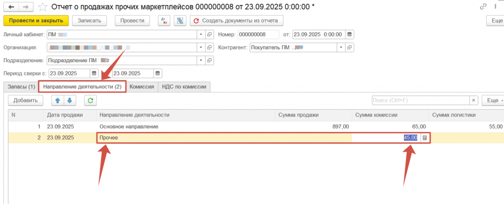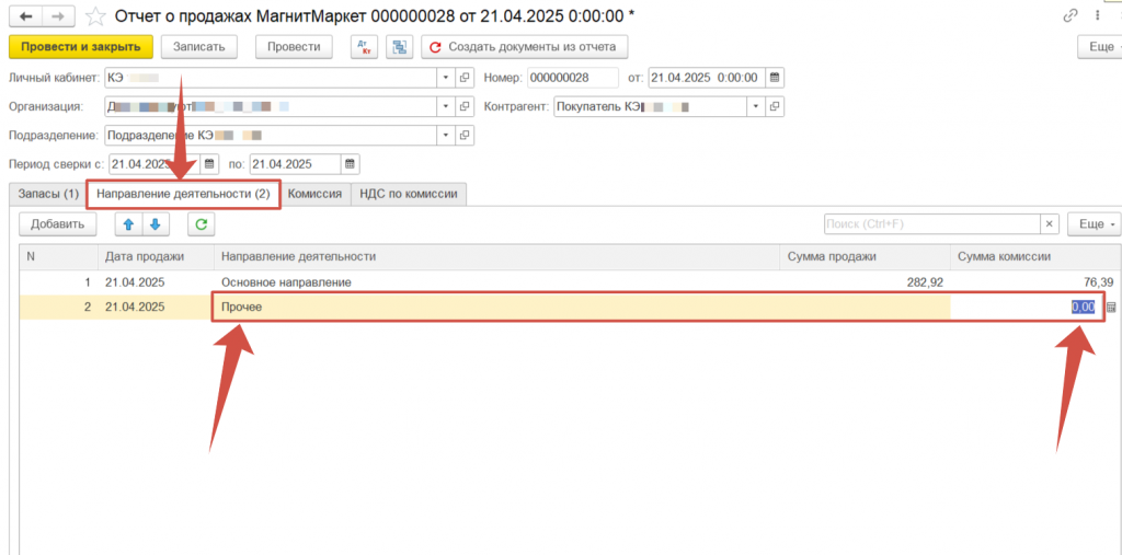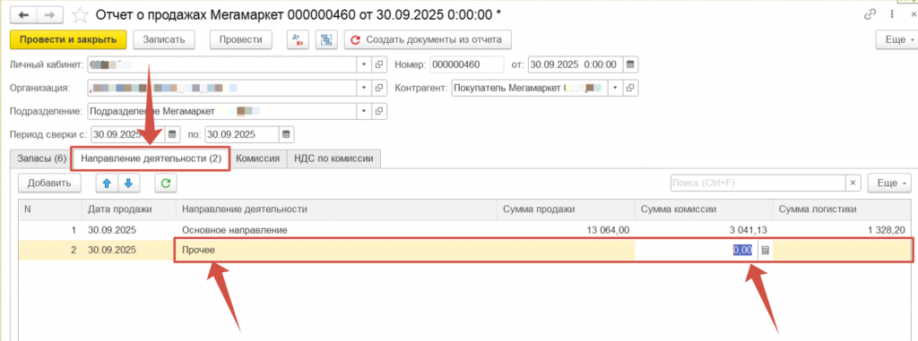 - Документ “Отчет о продажах”.Добавлена возможность распределять комиссии по направлениям деятельности вручную, по умолчанию распределяет автоматически.