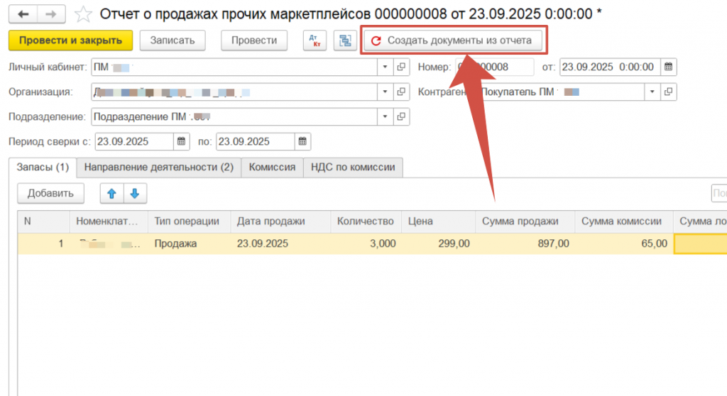 Добавлена кнопка ручного создания документов на основании отчета о продажах.