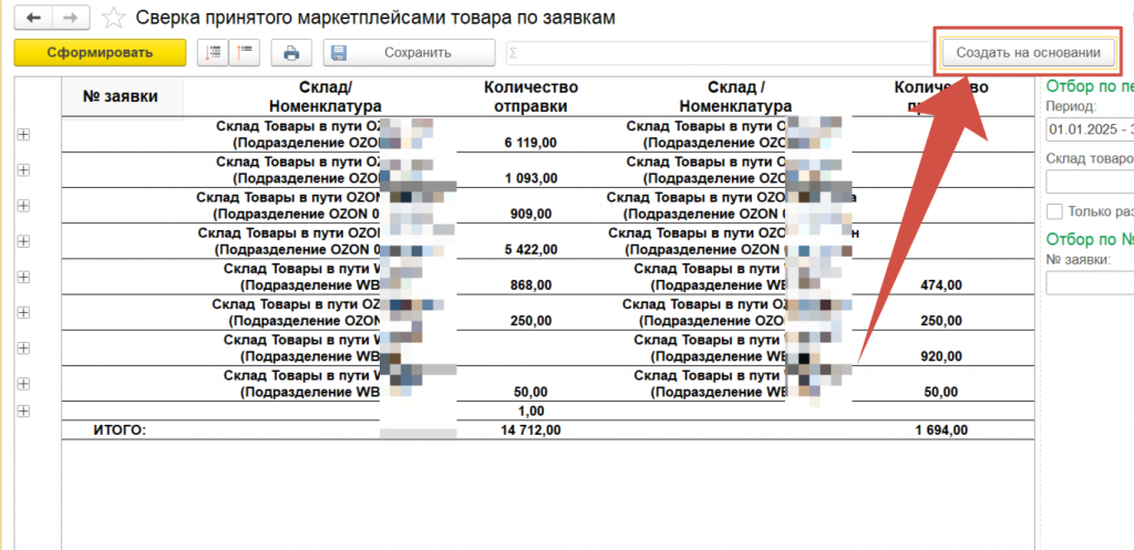 - На основании отчета “Сверка принятого товара маркетплейсами” появилась возможность создавать документы оприходования / списания/ пересортицы (как по инвентаризации).