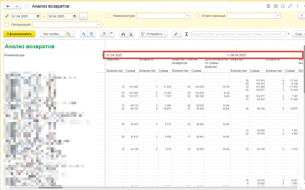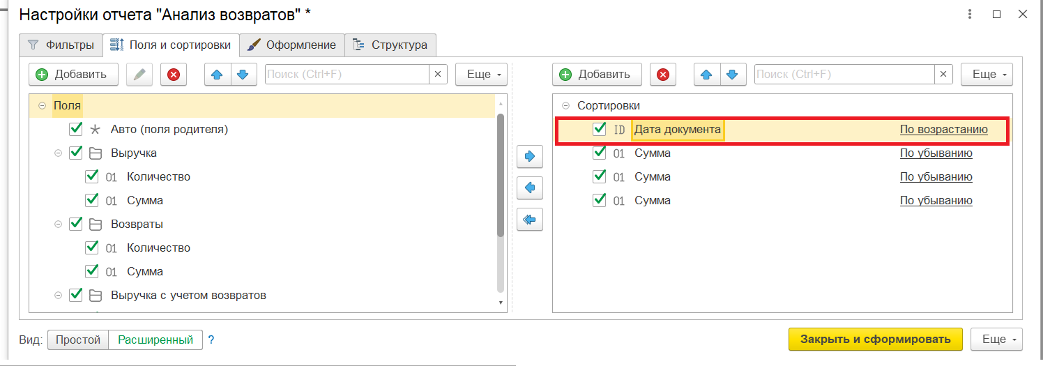 Добавлено поле “Дата документа” для отбора и группировки по датам.