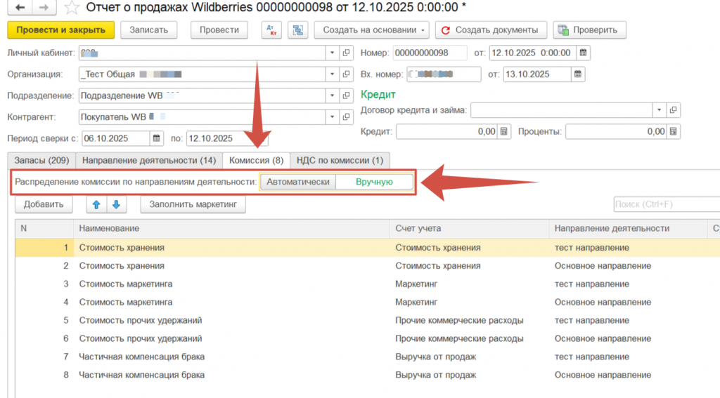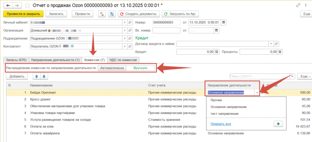 Добавлена возможность распределять комиссии по направлениям деятельности вручную, по умолчанию распределяет автоматически.