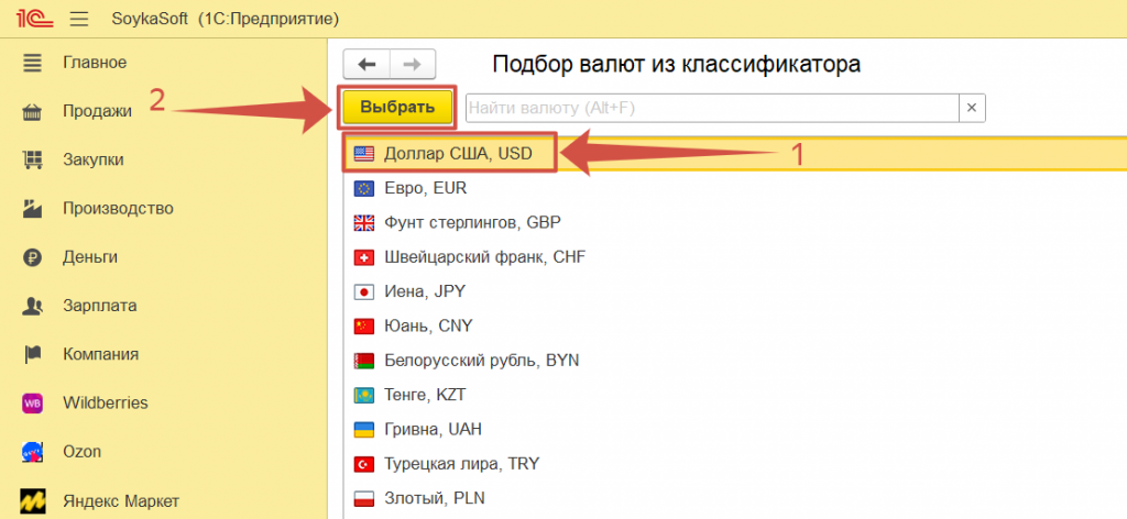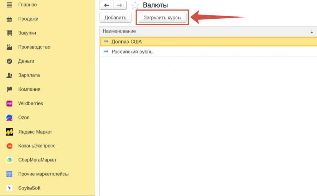 Если кнопки “Загрузить курсы” у вас нет, просим обратиться в техническую поддержку 1С УНФ SoykaSoft, мы бесплатно подключим вам данную опцию.