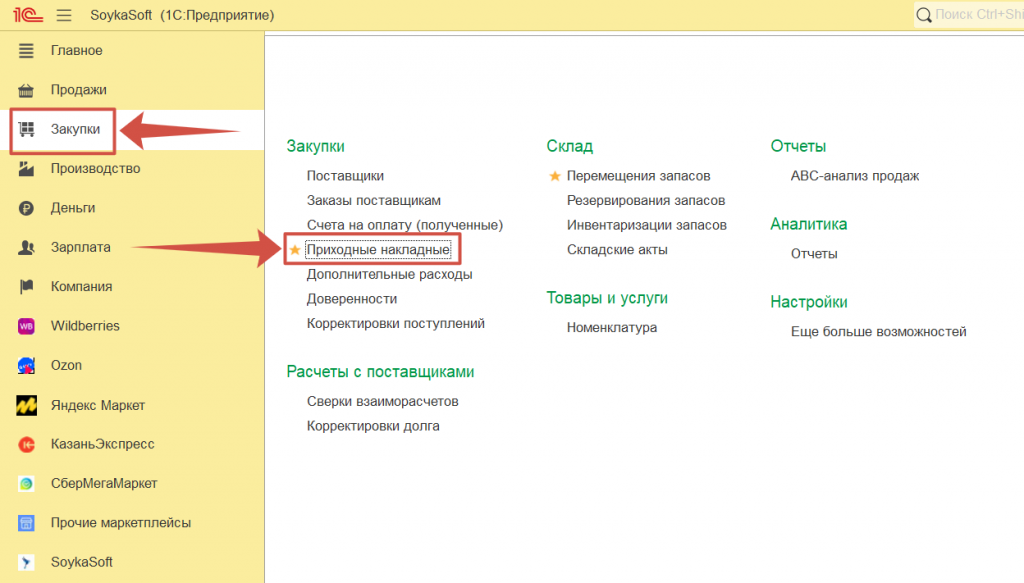 | Товаровед | Закупки | приходные накладные; корректировки поступлений; дополнительные расходы; передачи между организациями |
