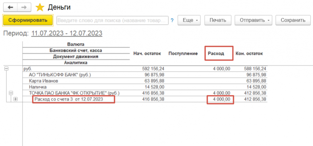 Данная операция отразится в отчете “Расчеты с поставщиками” и в отчете “Деньги”.
