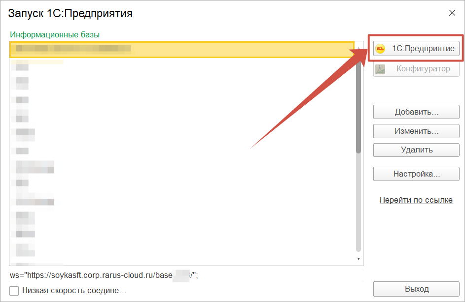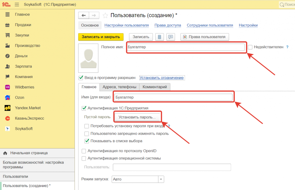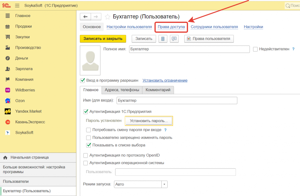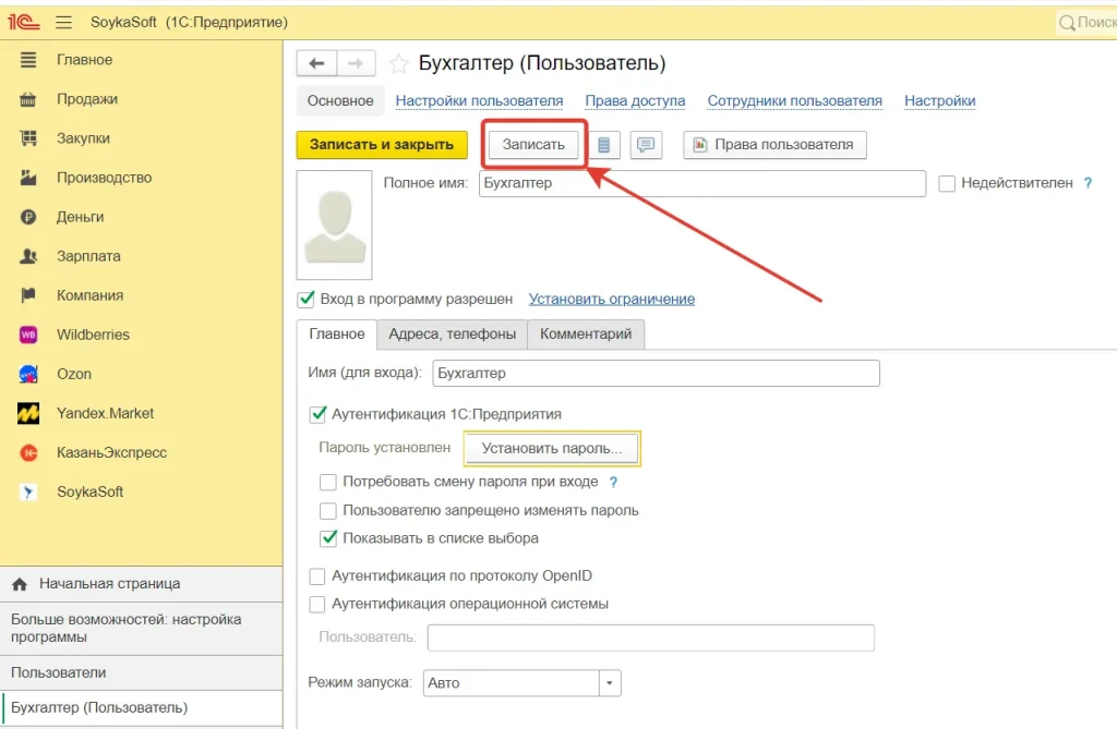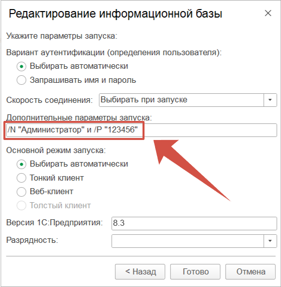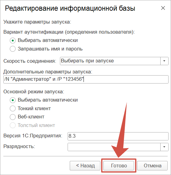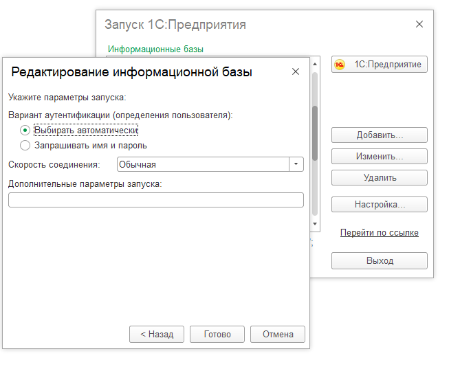 Теперь при нажатии кнопки “1С:Предприятие” происходит автоматический запуск программы без указания имени пользователя и пароля!