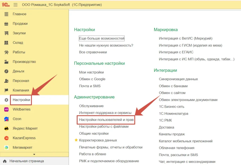Для добавления новых Пользователей необходимо перейти в Раздел Настройки >> «Настройки пользователей и прав».