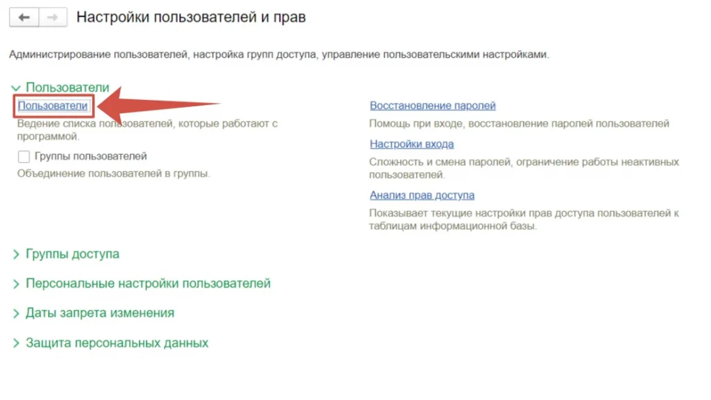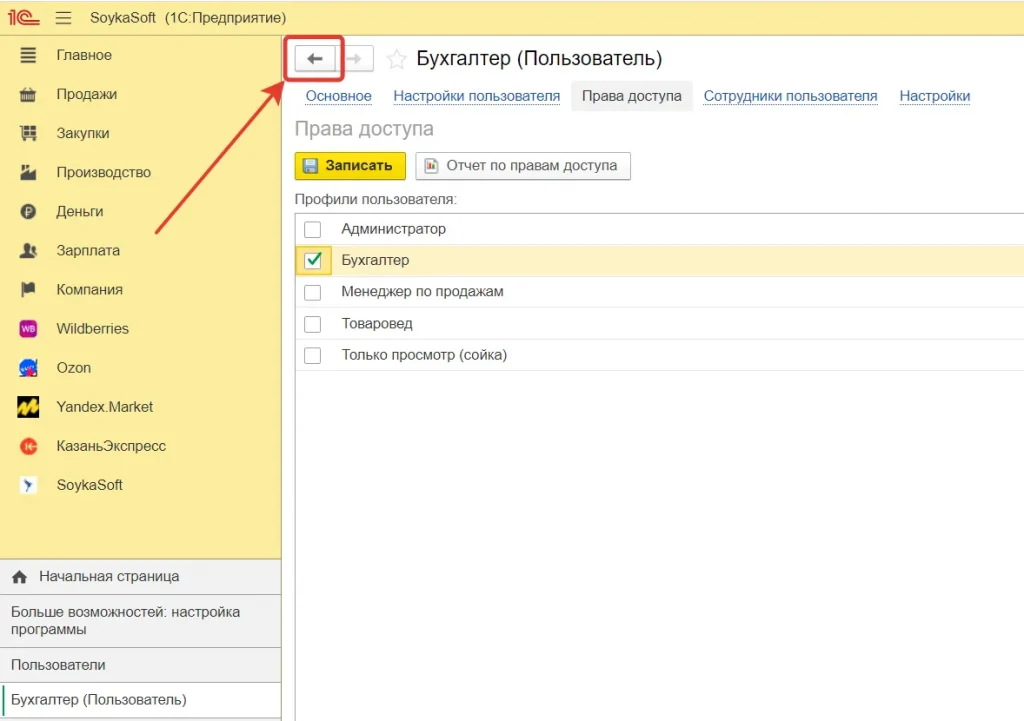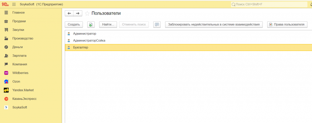 | Бухгалтер | Полные права, без права настроек пользователей | Нет прав на добавление, удаление и изменение прав пользователей |