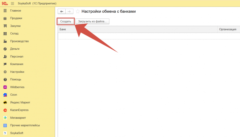 Далее необходимо выбрать организацию и банк, с которым будет осуществляться обмен.