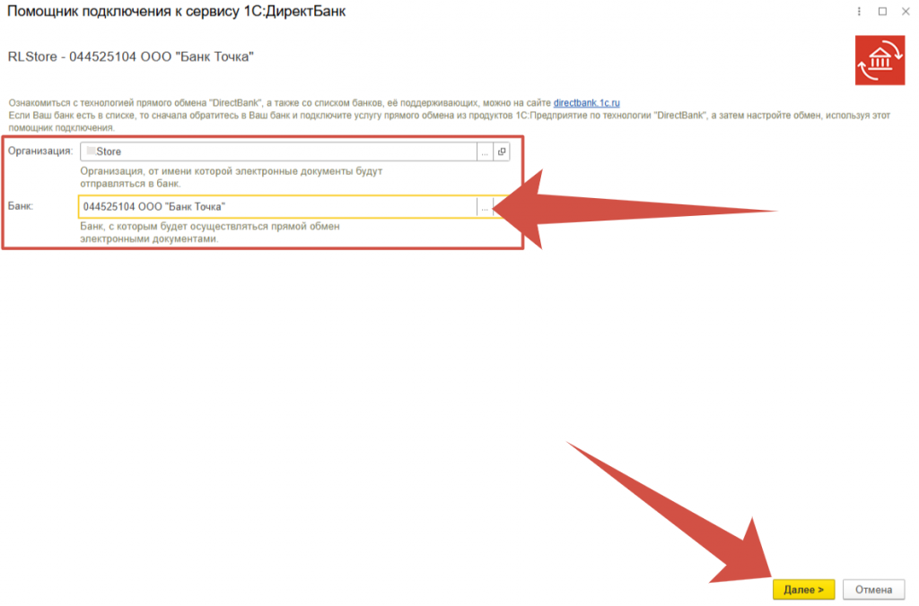 Важно! Перед началом использования обмена по технологии DirectBank необходимо обратиться в свой банк для уточнения условий подключения и способа взаимодействия.