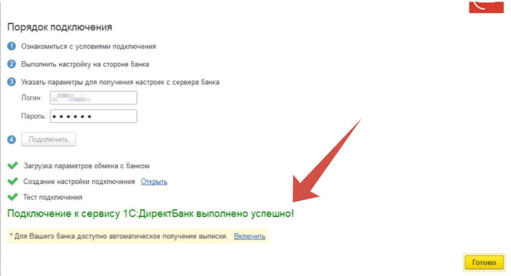 Для аутентификации по логину и паролю пользователю необходимо будет пройти аутентификацию на ресурсе банка. Настройки обмена заполнятся автоматически по полученным от банка значениям.