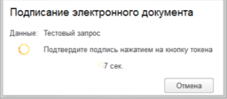 Если используется сенсорный токен, то при выполнении операций подписания, например, при тесте обмена, программа каждый раз будет запрашивать подтверждение подписи нажатием на кнопку сенсорного токена.