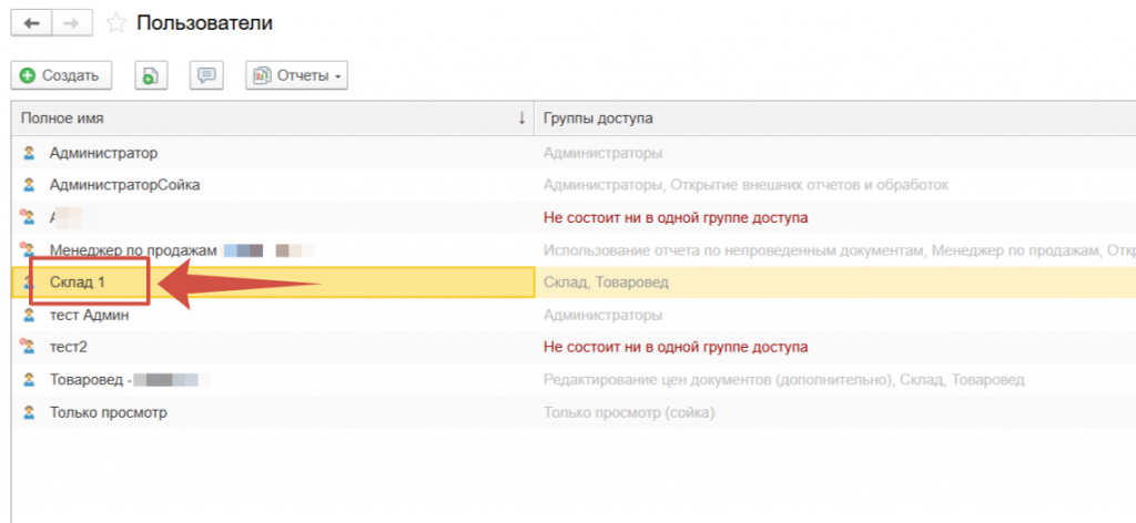 | Только просмотр | Права на все документы и отчеты с правом просмотра, без права редактирования. |