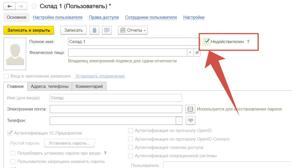Ставим галочку “Недействителен”.