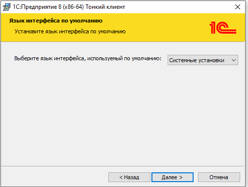 В следующем окне укажите язык интерфейса «Системные установки» и нажмите «Далее»: