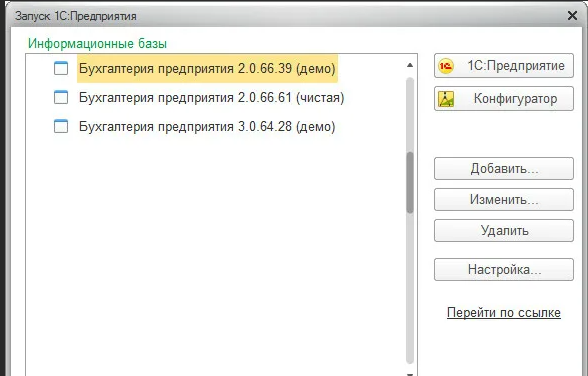 Если 1с ранее уже была установлена, то откроется список уже имеющихся баз. Нажмите кнопку «Добавить».