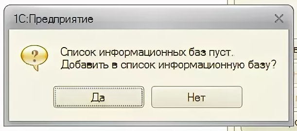 Если 1С ранее не была установлена, то будет выдано окно с вопросом «Добавить в список информационную базу?». Нажмите «Да».
