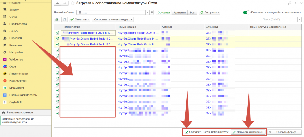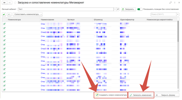 Если остались товары, которые вы сопоставлять не будете, т.е. они продаются только во втором личном кабинете, то необходимо поставить галочку “Создавать новую номенклатуру”