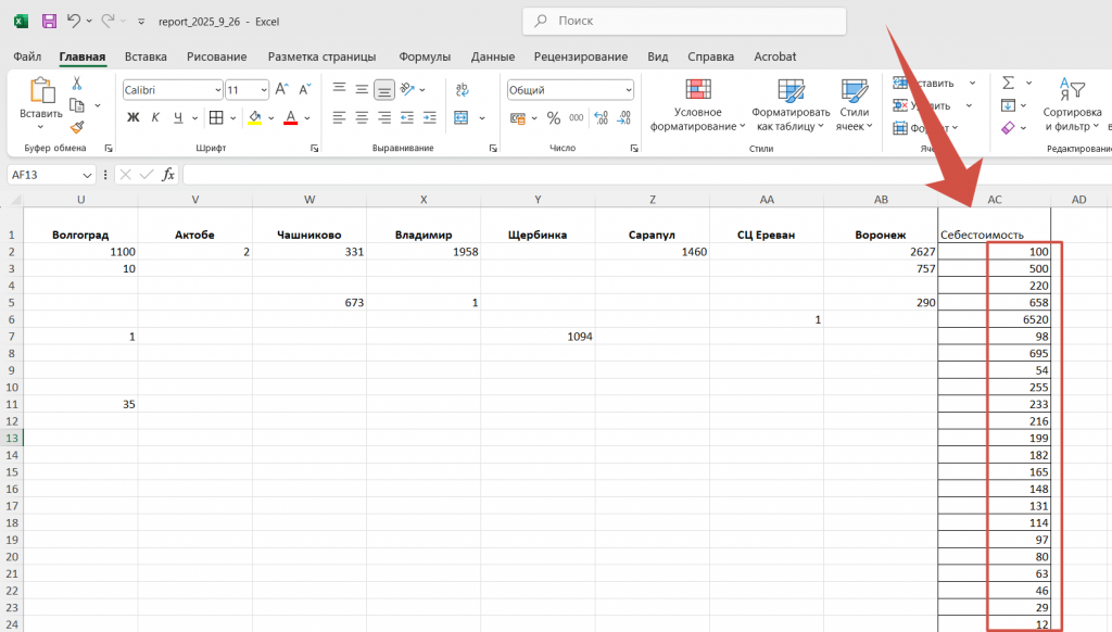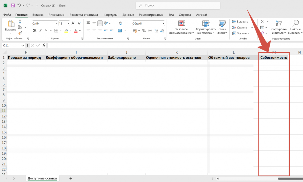 В скаченном файле рекомендуем добавить еще один столбец с наименованием “Себестоимость”.