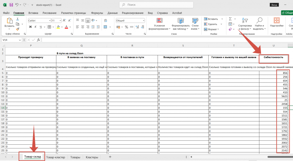 Добавить нужно будет его последним столбцом и заполнить себестоимость товара хранящегося на маркетплейсе товара по каждой строке, не пропуская значения.