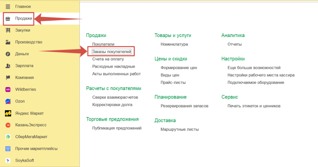 Загруженные заказы покупателей проверяются через раздел Продажи >> Заказы покупателей.
