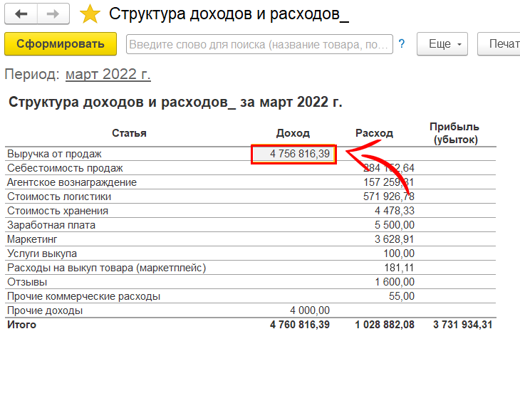 Начнем с избранного отчета “Структура доходов и расходов”.