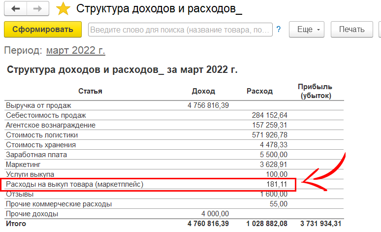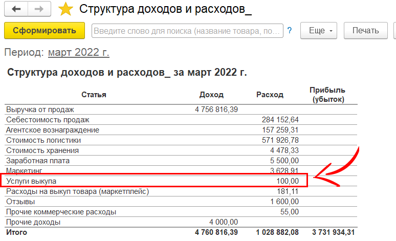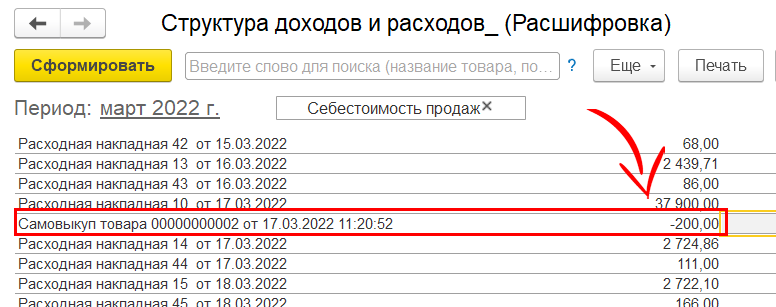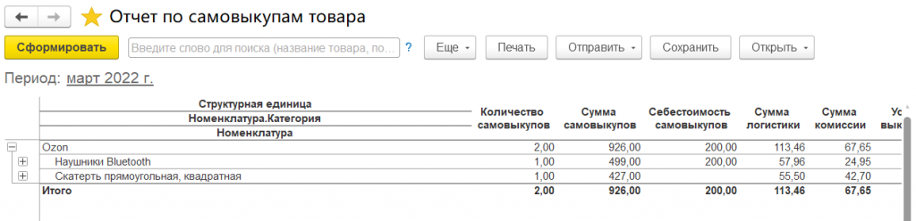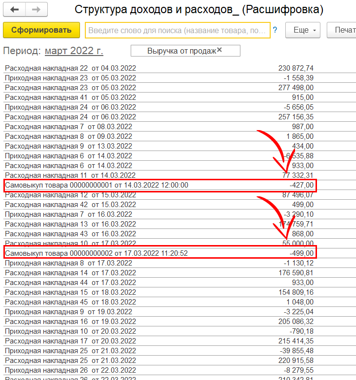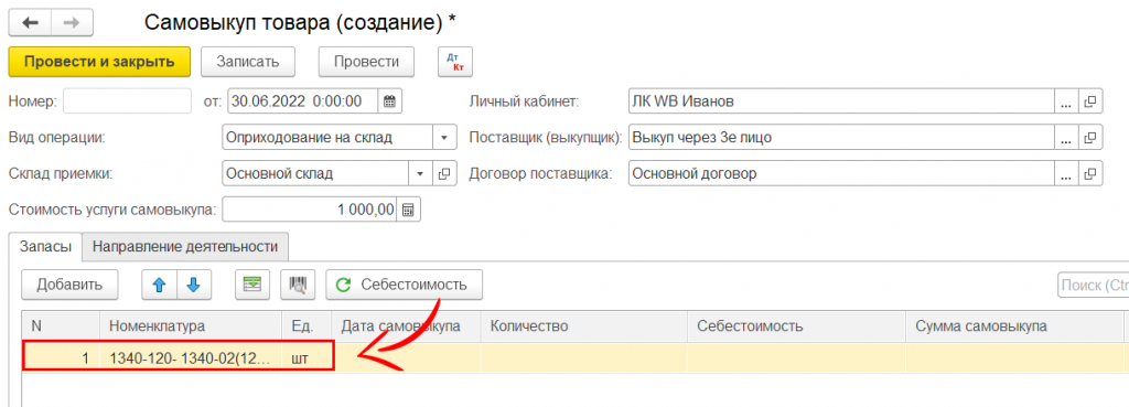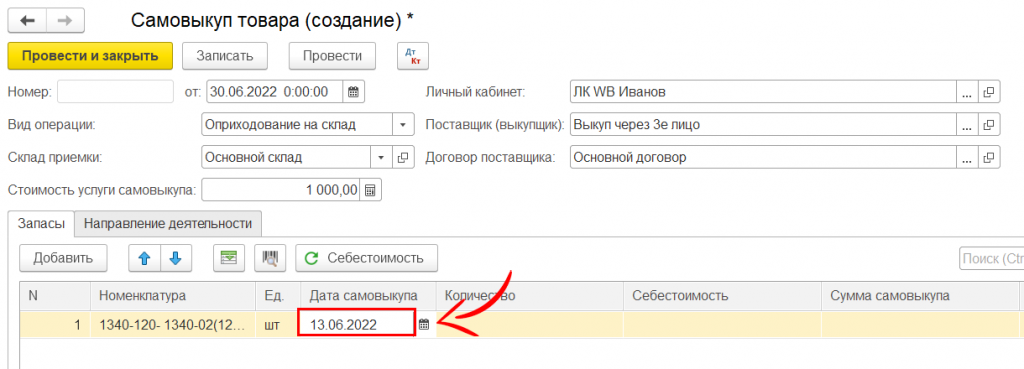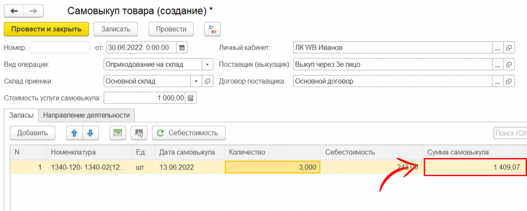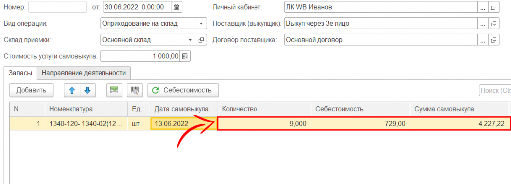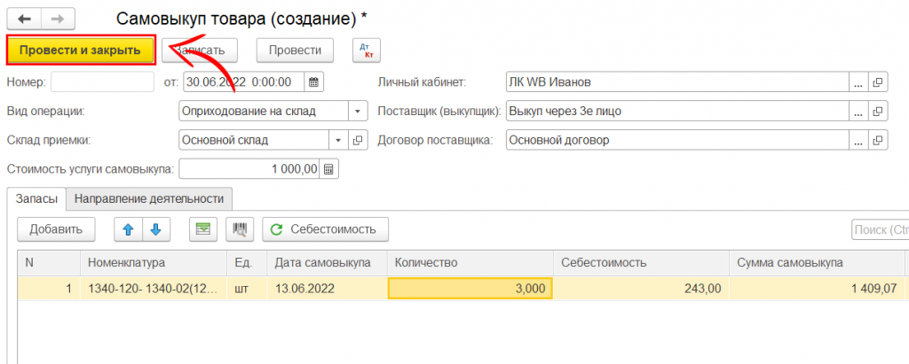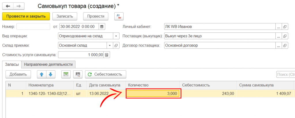 При необходимости это количество можно изменить, укажем то количество товара, сколько в действительности было самовыкупов.