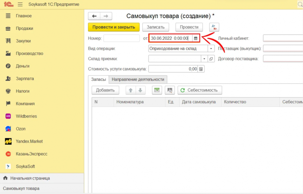 Давайте вместе заполним документ самовыкупа для этого переходим на вкладку SoykaSoft.