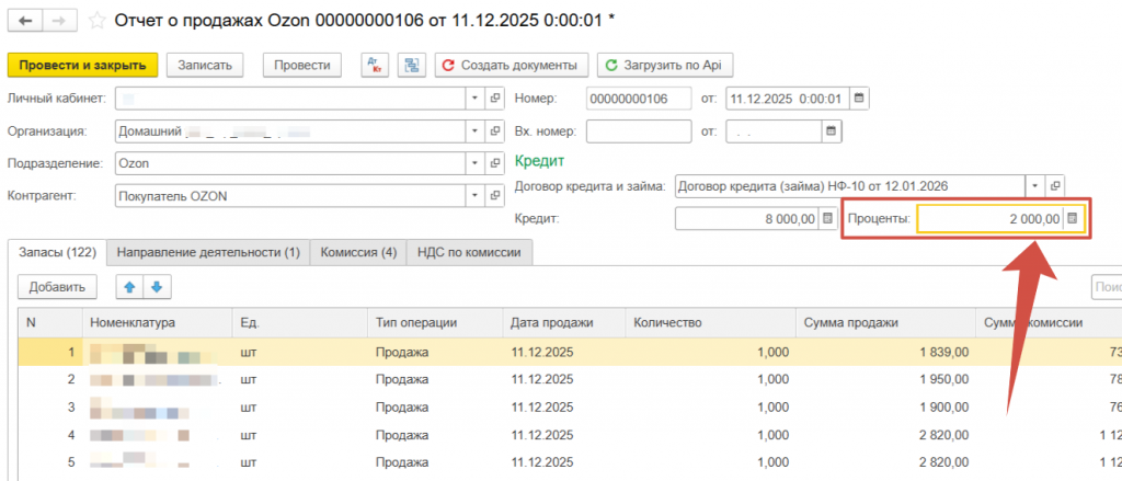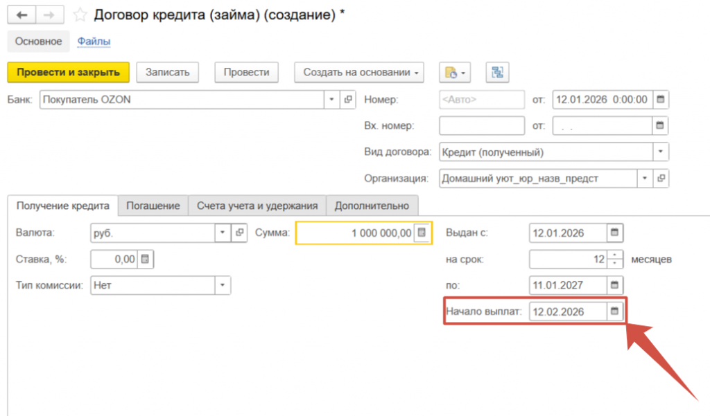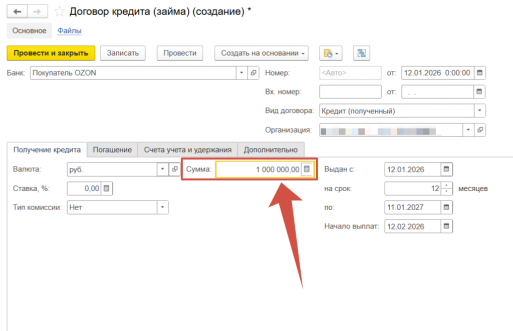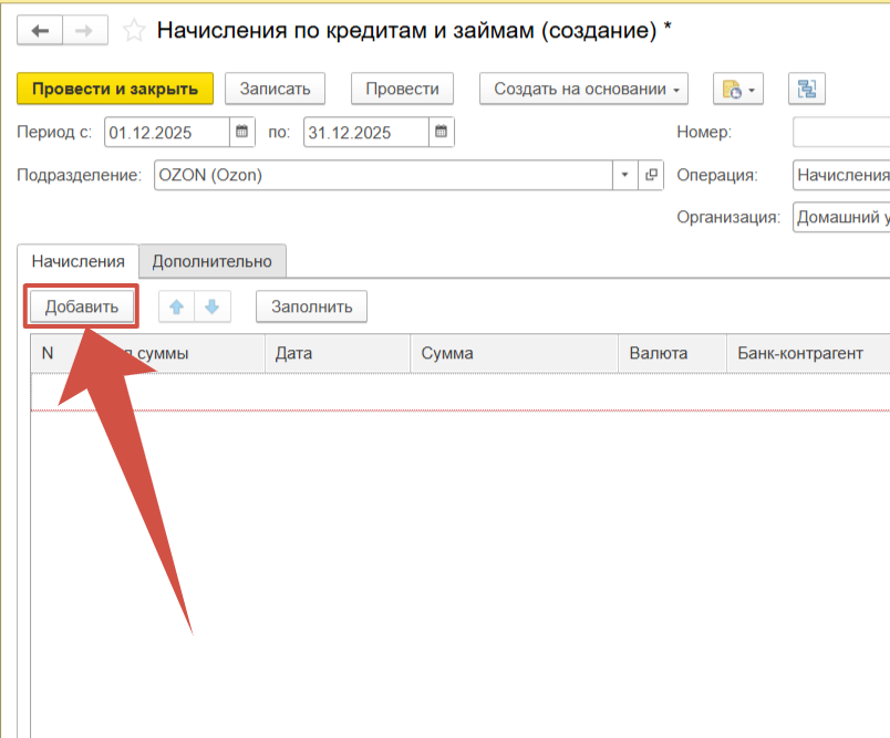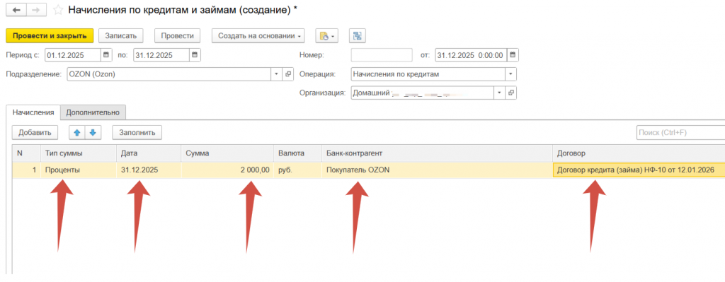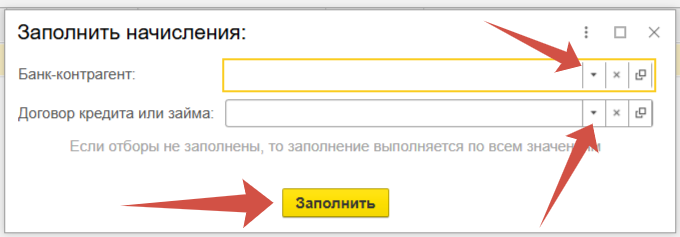 Если вы предварительно в договоре кредита (займа) заполняли график платежей, то вместо ручного ввода суммы процентов можете воспользоваться кнопкой “Заполнить”.