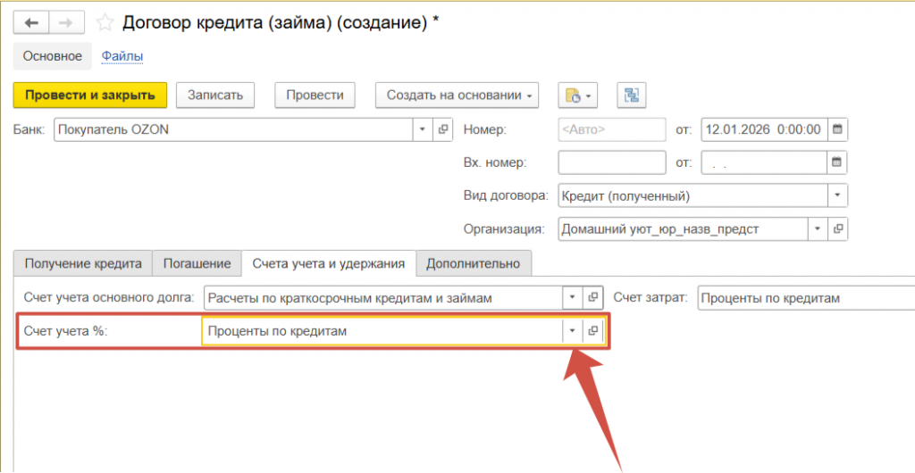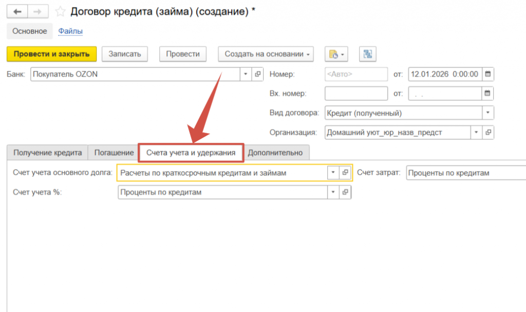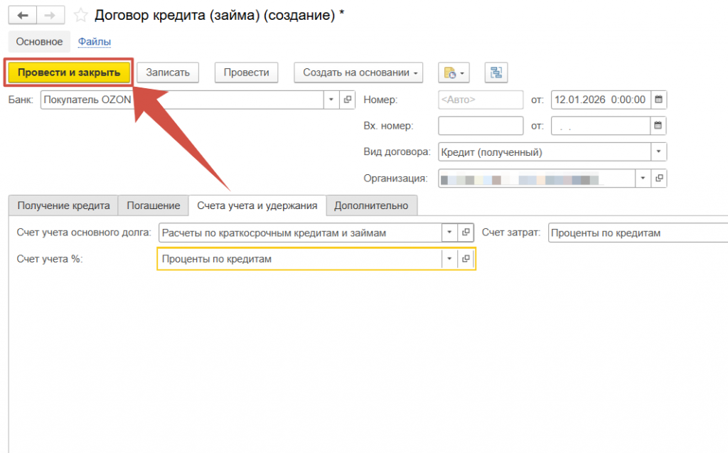 Выбираем Банк-контрагента, который выдал нам кредит (заем);