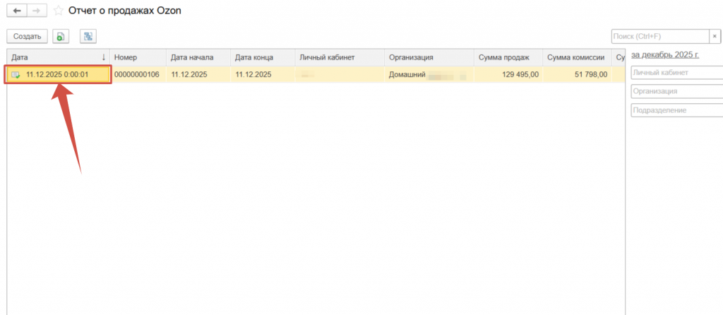 И также на вкладке “Дополнительно” проверяем, что период и дата создания документа относятся к одному и тому же месяцу;